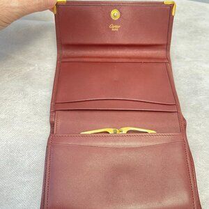 Cartier Vintage Must Line Bordeaux Tri-Fold Wallet w/ Kisslock Pouch - Preowned