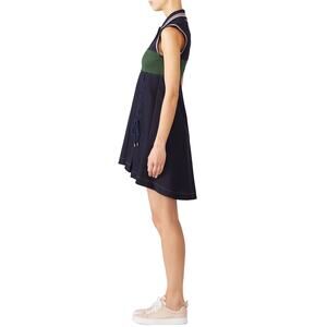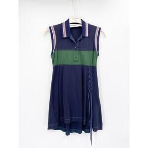 Carven Lace Up Navy Blue Green Mini Collared Polo Shirt Dress Size 38