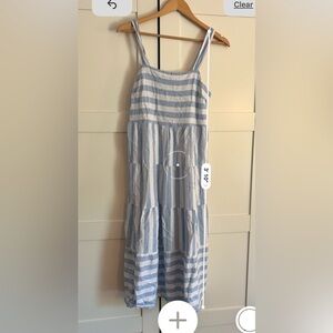 Casa Cabana Diane Stripe Linen Blend Midi Dress Size Small Coastal Beach Resort