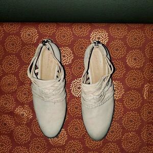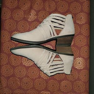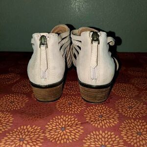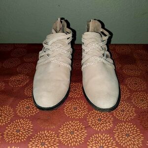 Caslon Liam Braided Strap Back Zip Pink Suede Bootie Sz 7. Has one tiny spot on top of one boot. Please refer to pics.