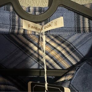 Elevate your casual wardrobe with this stylish plaid button-down shirt. Featuring a classic blue and tan pattern, it's perfect for everyday wear.