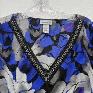 Description: Catherines Flutter Sleeve Tunic Top Bold Floral Accordion Pleats Beaded Neck Size 1X 18-20W