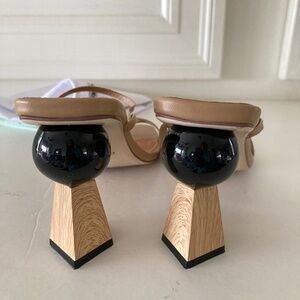 Caverley Anthropologie Trish Leather Neutral Geometric Heeled Mules