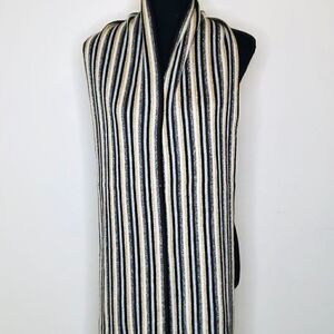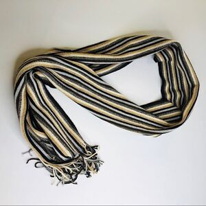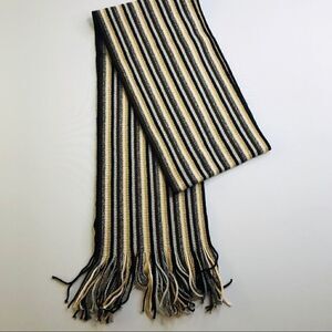 CEJON Knit Striped Scarf Fringe Black Brown 8x80"