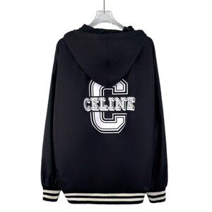 Celine Black cotton hooded varsity jacket