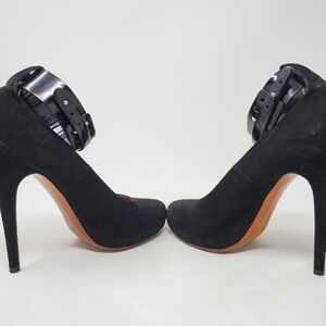 Celine Black Suede Round Toe Ankle Strap High Heel Pumps Size 39.5 9