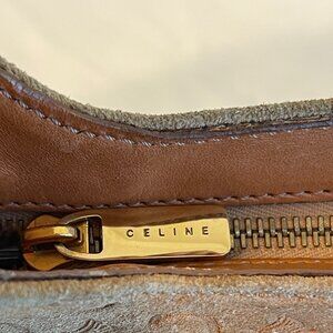 Celine Vintage Ava Macadam Suede Pochette Shoulder Bag in Mustard/Brown - Preowned