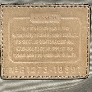 The Coach Hamptons Weekend 19391 Tote Bag in gold is a luxurious accessory designed for both style and functionality. Crafted from embossed leather, it boasts a sophisticated texture and durability. The classic Coach logo is subtly embossed on the leather, adding a touch of elegance. Despite being pre-owned, its quality remains evident. The inclusion of a simple charm attached to the zipper enhances its charm. With ample space and a secure zipper closure, this tote bag is ideal for carrying your essentials in style, whether for a weekend getaway or daily use.