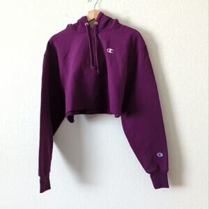 Champion Crop Hoodie Sweatshirt Medium Reverse Weave Purple Cut Off Cropped