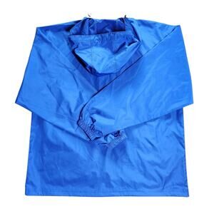 Champion Packable Jacket is a lightweight windbreaker in blue. Size large, hooded, new with tags. Perfect for outdoor activities. Excellent condition.