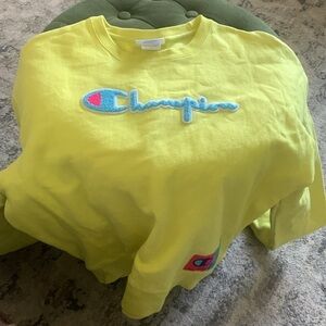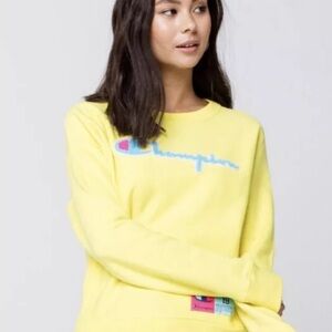 Champion Reverse Weave Yellow Crew Sweatshirt Pullover size L logo spell out