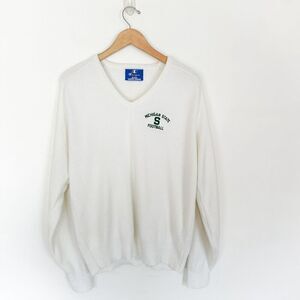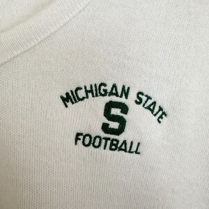 Champion Vintage 80s Unisex Michigan State Football Cream Acrylic V Neck Sweater