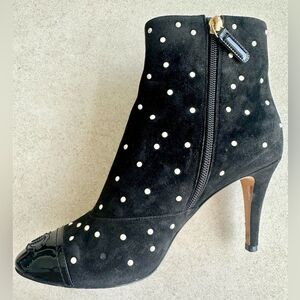Chanel 2018 Pearl Embellished Suade Cap Toe Ankle Booties Size 36.5