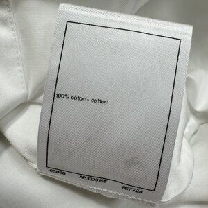 This white jacket from Chanel embodies the brand's classic aesthetic with its minimalist yet sophisticated design. The clean-cut round neckline exudes elegance, while multiple metal buttons engraved with the brand's logo add a touch of refined charm. Four symmetrical pockets offer practicality while enhancing visual dimension. Crafted from premium fabric, it maintains a crisp, structured silhouette. Blending French elegance with modern minimalism, this versatile piece effortlessly elevates any ensemble—whether paired with dresses for a retro socialite vibe or with trousers for a sharp, professional look. A true statement piece, it defines luxury style in any wardrobe.