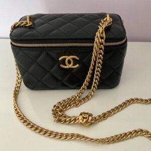 Chanel Lambskin Quilted Small Pillow Crush Vanity Case With Chain Black