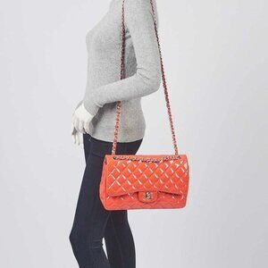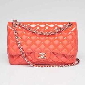 Chanel Pink Quilted Patent Leather Classic Jumbo Double Flap Bag