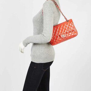 Chanel Pink Quilted Patent Leather Classic Medium Double Flap Bag
