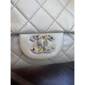 Chanel Precious Jewel Turn lock quilted leather - A rare and elegant Chanel Classique shoulder bag with striking golden leather, subtle metallic sheen - a standout piece. Normal pre-loved wear.