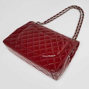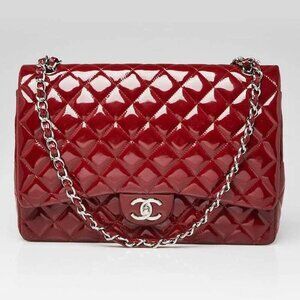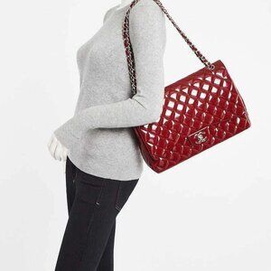 Chanel Red Quilted Patent Leather Classic Maxi Double Flap Bag