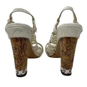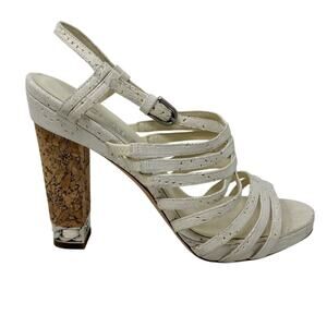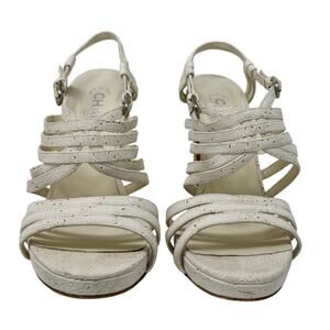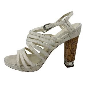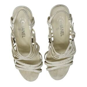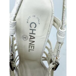 Chanel Suede Block Cork Heel Chain Link CC Detail Strappy Sandals white size 39