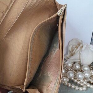 Elevate your style with this elegant vintage Chanel Beige Long Bifold Flap Clutch/wallet. Crafted from calfskin leather showcasing the classic Chanel CC logo. Made in Italy. All blemishes are shown in the pictures including soiling in the zipper coin section which is typical for vintage bags. Carefully examine all photos to confirm the described condition.