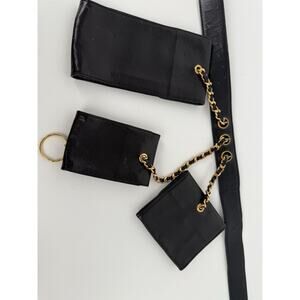 Chanel Vintage 1990 Waist Belt Multi Pouch Black Leather