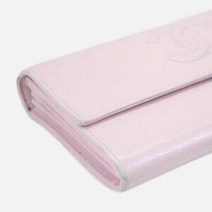 🩷Chanel Womens Light Pink Leather CC Flap Long Wallet🩷