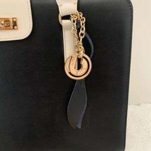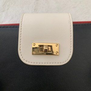 Charles Jourdan Navy / Red / Cream Colorblock Boxy Tote Handbag with Charms