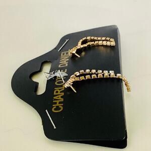Brand new and super glittery rhinestone dangle earrings by Charlotte Daniel in original packaging. Approximate drop is 1.5”.