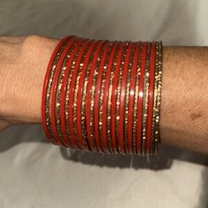 Charlotte Daniel New Bangle Set Red and Gold Bangles Thin (26 pcs)