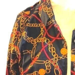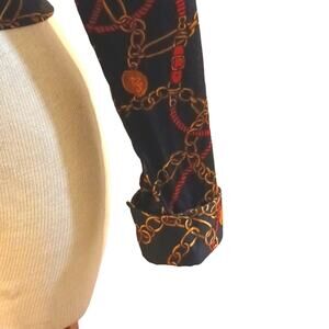 Charter Club Long Sleeve Shirt Sz 12 Abstract Gold Chains Equestrian Career Y2K