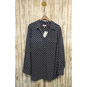Charter Club Women's Button Down Top Roll Tab Navy Blue Gold Button Blouse 3X