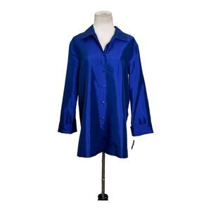 Charter Club lapis blue 3/4 sleeves button collard blouse size large