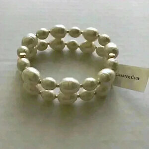 A double row of large imitation pearls lends a trendy touch to this Charter Club stretch bracelet.