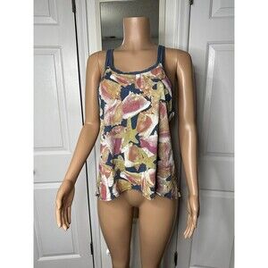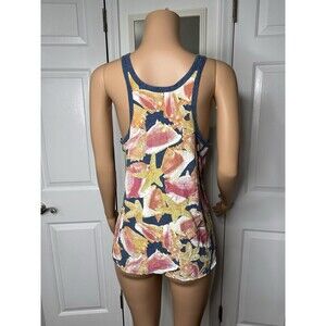 This Chaser tank top is perfect for a day at the beach or a casual outing. The sleeveless top features a round neck and a pullover closure, with a relaxed fit and a size small. The colorful seashell pattern adds a touch of Hawaiian and tropical vibes, making it a great addition to any summer wardrobe.
