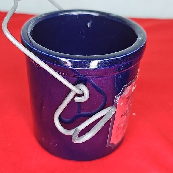 Vintage Cheese / Butter Crock. Cobalt Blue color. Farmhouse style with Wire Bail Lid. Jar measures 3.5'' diam x 4.75'' up to 6'' tall (with wire lid). Weighs 1.5lb.