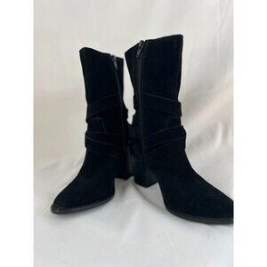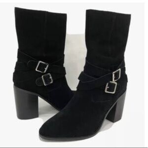 Block heel is 3.5" with Silver Buckle details and size zipper closure
