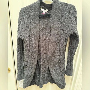 Chenille Cocoon Cardigan Sweater, Midweight,charcoal grey open front size M