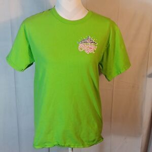 This neon green short sleeve Cherished Girl tee is a size Medium with a pit to pit measuring 20" and a length of 24". In excellent condition. All offers are welcome.