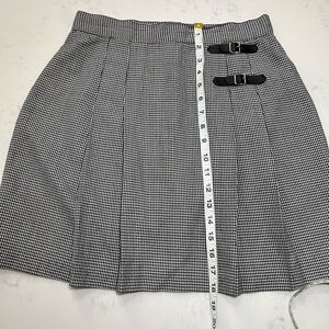 Step out in style with this chic houndstooth mini skirt. Featuring elegant buckle accents, it's perfect for adding a touch of sophistication to your look.