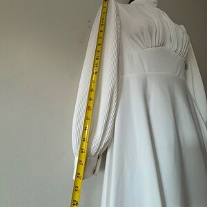 DESCRIPTION: custom made wedding dress with hood , This was pass to me to wear, it first me except the length, I wear 4~6 , Small or medium ,I’m 35-28-35