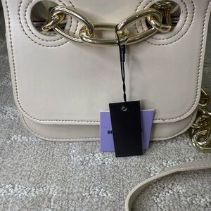 Elevate your style with this chic winter white mini bag, featuring a luxurious gold chain. Perfect for adding a touch of elegance to any outfit. Vegan leather.