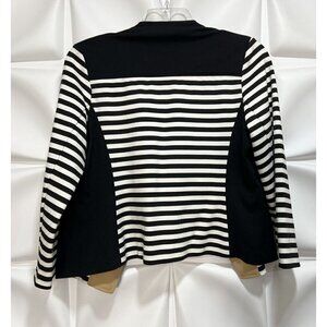Chico's 1 Sz M Black Striped Moto Jacket Blocked Ponte Knit Tuxedo Blazer