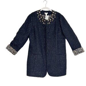 Chico's Ani-Glam Tweed Metallic & Beaded Long Jacket Coat in Black