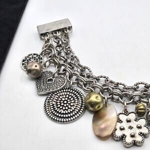 Chico's Boho Bracelet Rustic Patina Matte Silver Tone Magnetic Closing 6.5" Long.