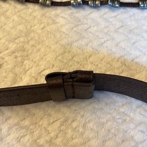 Chico's Brown Leather Lined Belt with Silver Tone Accents Size SM