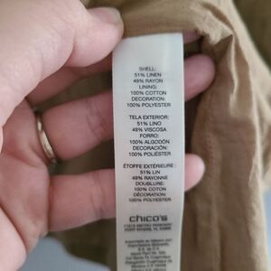 Overall great preowned condition beautiful detailed linen blend jacket. Some minor wash wear and a few loose threads noted see pictures. Chicos size 0 = US S/4 See attached Chicos size chart