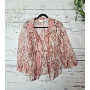 Chico's Multicolor Geometric Print Open Front 3/4 Sleeve Open Front Blouse Womans Size 3. Pre-owned