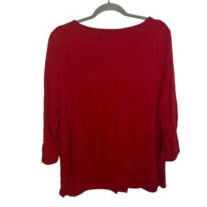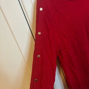 Pre owned excellent condition. Worn nice. Adorable red military flowy sleeve blouse with gold faux button detailing. So pretty and flattering. Perfect for the holidays and Valentine’s Day! Chicos size 2 = womens large.