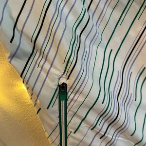 New without tags! One side is a water resistant material in white with a green, purple, and black print— the other side is fleece in a green colored diamond knit print.